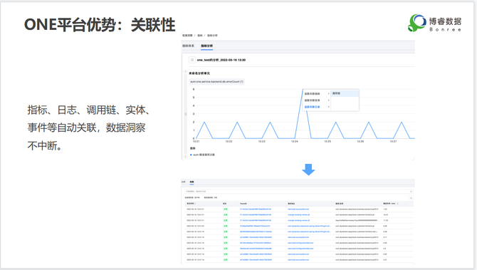 博睿数据产品高级总监孙丽表示,“ONE平台是一个集告警收敛、异常检测、根因定位、智能见解,聚焦业务与用户体验的运维体系,打破运维孤岛,避免重复建设,赋能企业数字化的一体化、智能化、面向业务与用户的开箱即用的一体化可观测平台,实现监控到可观测,无需研究各种开源软件,各种大数据组件,各种算法,各种中台架构,降低管理成本,提升管理效能和协同效率。帮助用户实现从孤立的工具到统一平台的建设要求,提升用户满意度,降低获客成本及协同难度,打造极致的平台体验。”