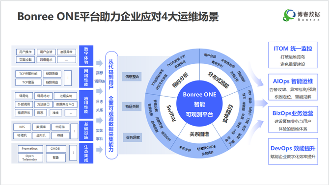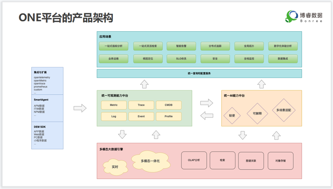 5月20 日,博睿数据正式推出了一体化智能可观测平台ONE,该平台旨在建立一体化、智能化、面向业务与用户体验的统一运维平台,助力企业提高数字化体验,降低运维成本,提升工作效率,为数字化转型赋能升级。同时,这也是业界第一个将所有运维监控需求“All in ONE”的统一平台。