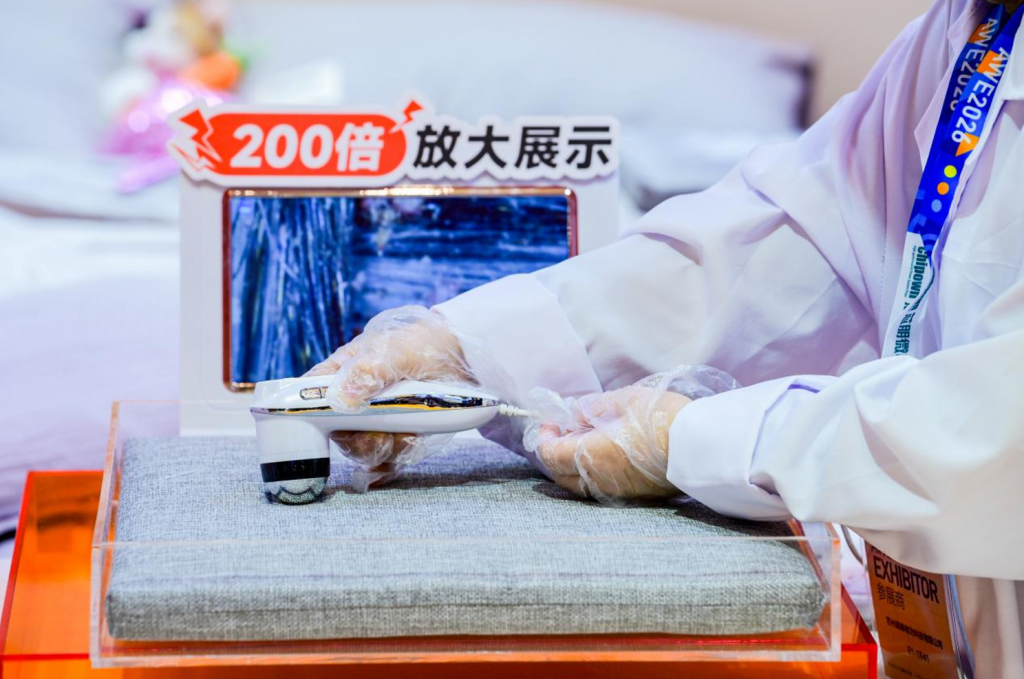 值得一提的是,友望是本届AWE清洁电器馆中唯一一个将“床”作为体验场景的品牌。在除螨仪体验区,友望搭建了真实卧室场景,让观众亲眼看到床铺深度清洁的全过程。配合显微镜实时成像,用户能直观看到清洁前后尘螨数量的变化。有参观者表示:“打扫了那么多年,第一次亲眼看到自己床上的螨虫长什么样。”